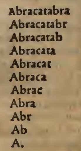 A pag. 462-463 troviamo la spiegazione di come si usava la parola abracadabra che da almeno il II secolo d.C. veniva usata per costruire talismani magici contro la malattia :