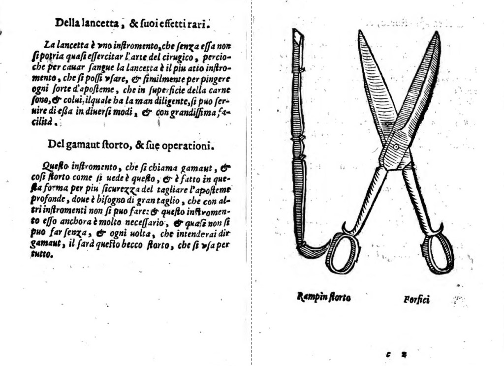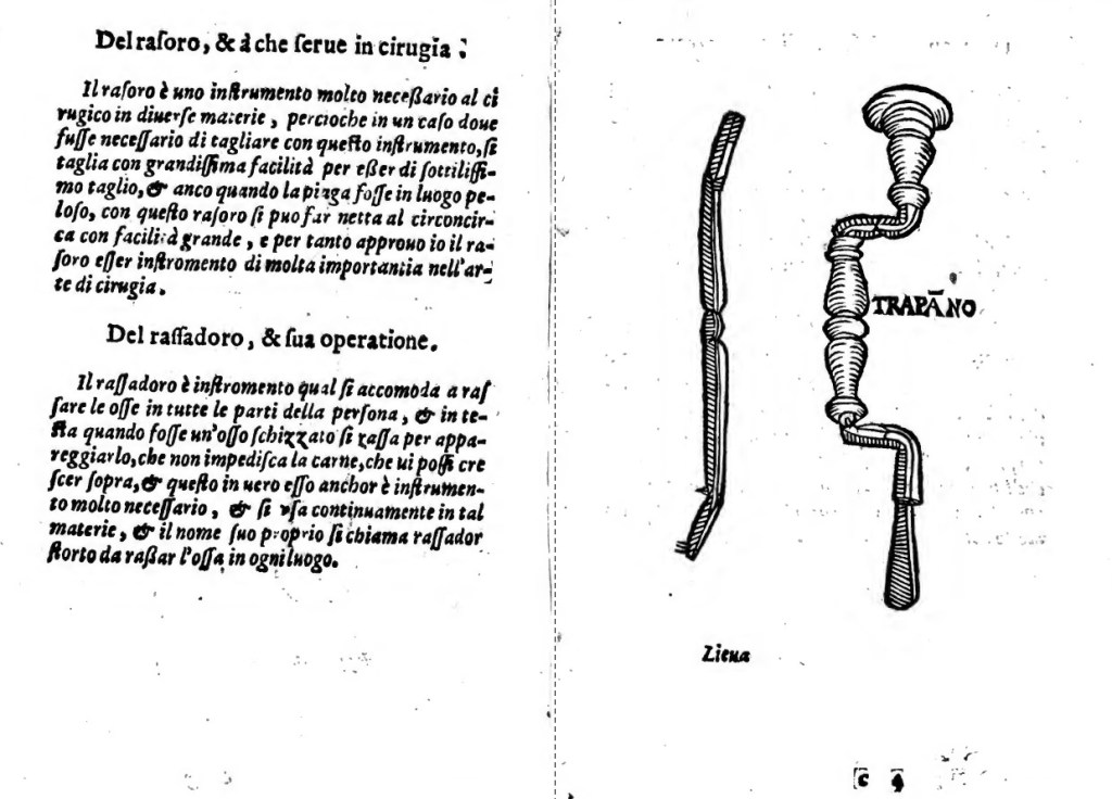 Una descrizione dettagliata degli strumenti chirurgici: L’autore fornisce una ricca iconografia degli strumenti utilizzati nella pratica chirurgica del suo tempo.