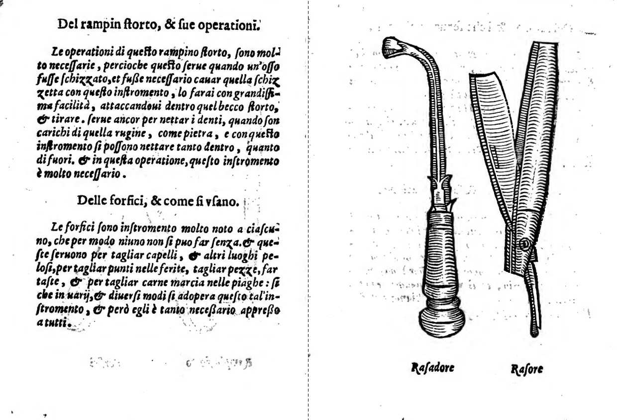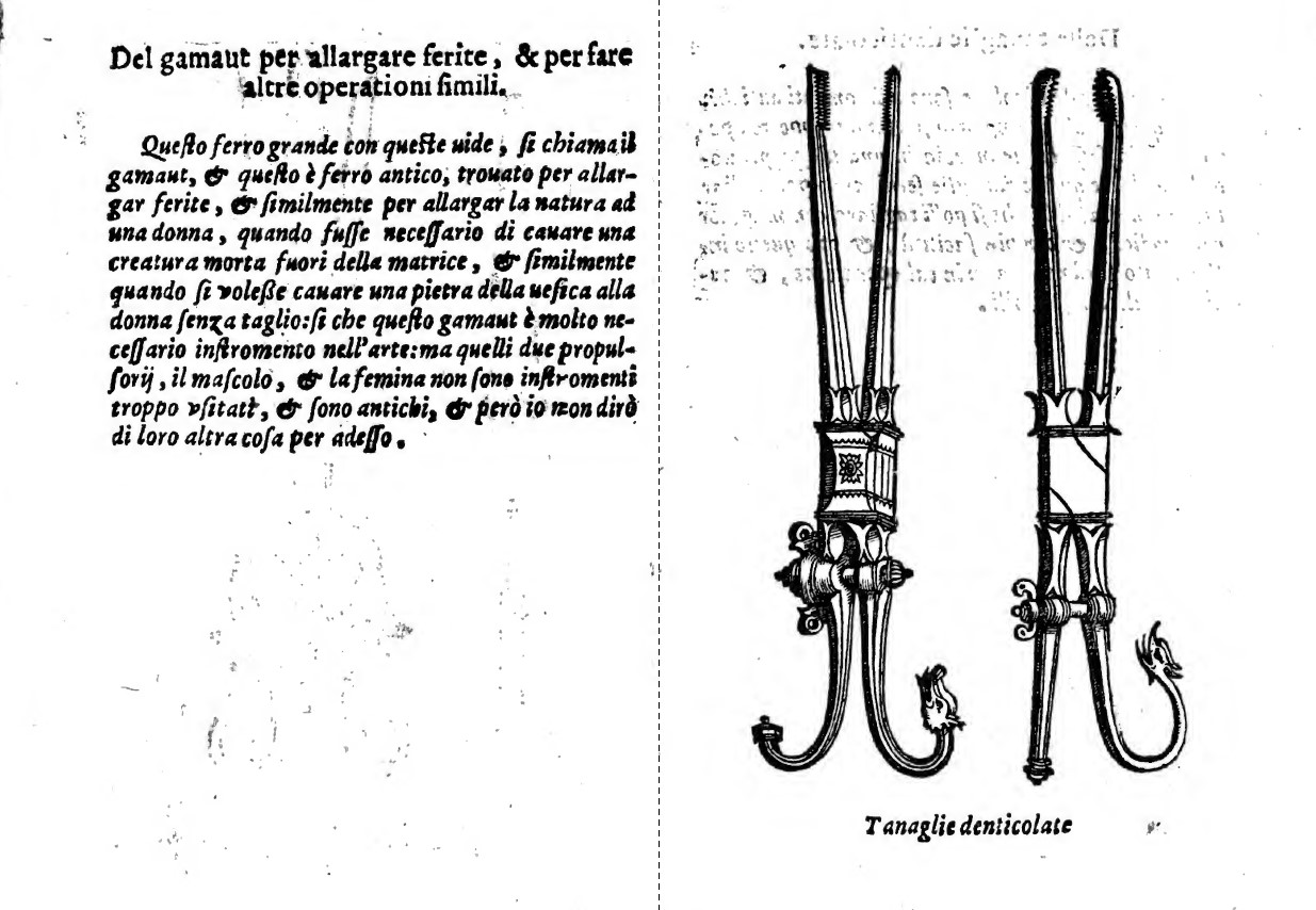 Una descrizione dettagliata degli strumenti chirurgici: L’autore fornisce una ricca iconografia degli strumenti utilizzati nella pratica chirurgica del suo tempo.